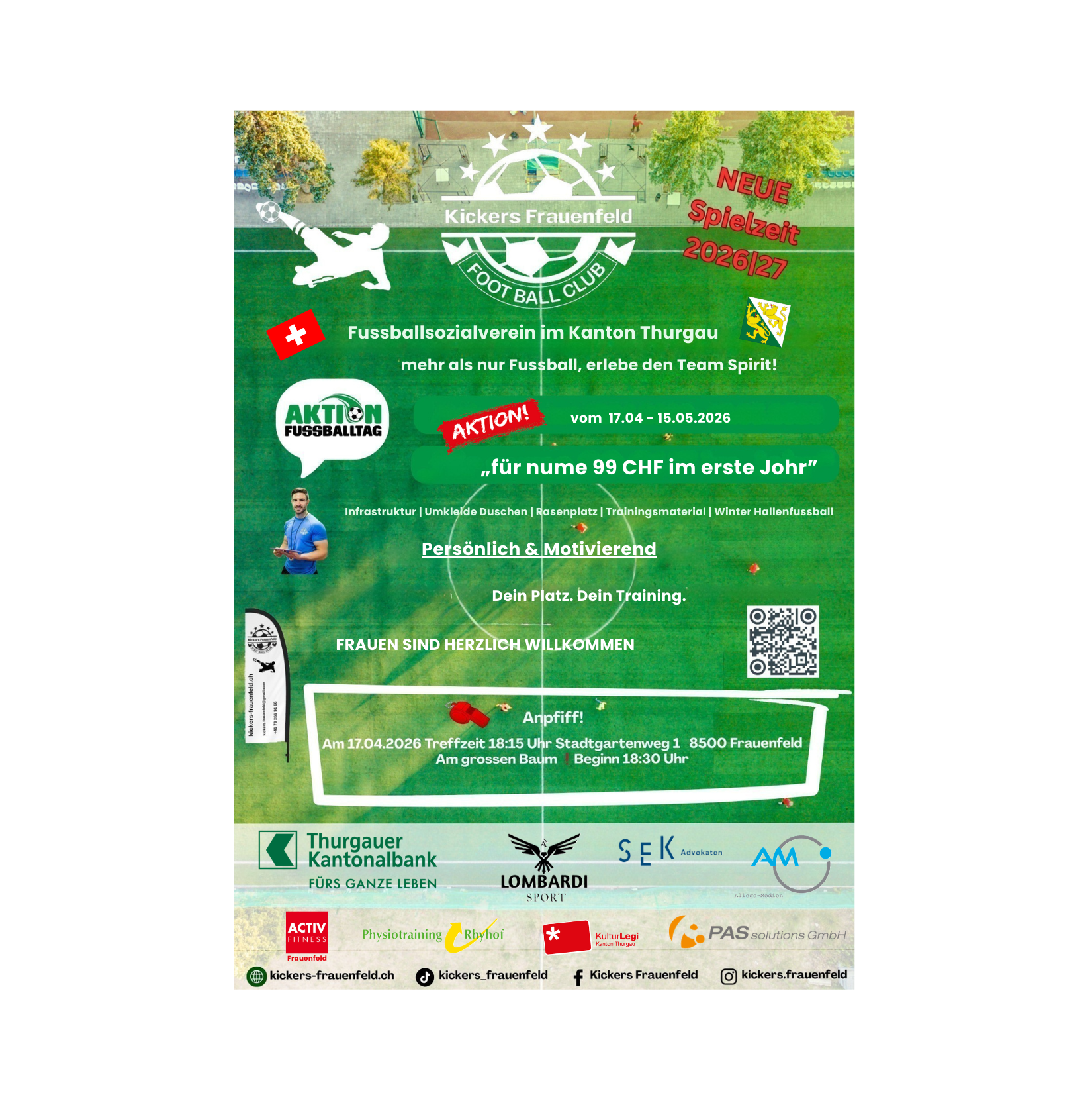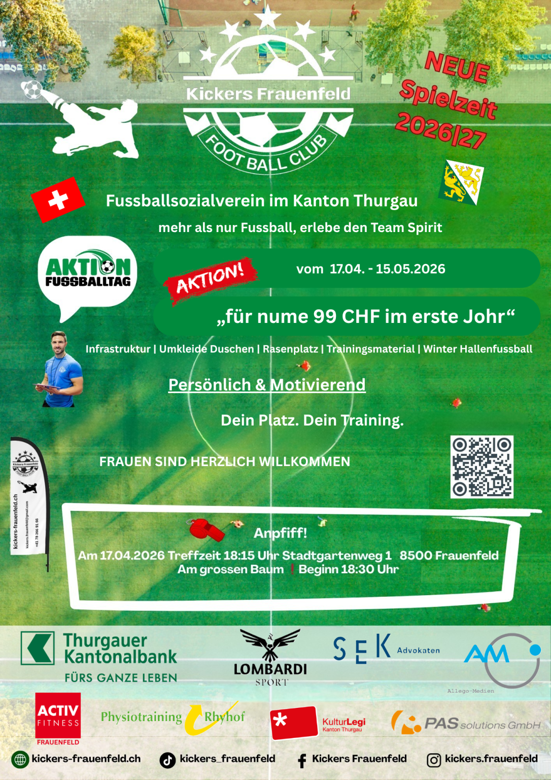 Ein besonderes Highlight in der Planung ist ein geplantes Grossfeld-Turnier sowie ein Bambini-Kleinfeldturnier in Frauenfeld. Das Turnier soll durch einen externen Veranstalter organisiert werden. Die Kickers Frauenfeld sind dabei als Initiator, teilnehmende Mannschaft sowie Helfer aktiv beteiligt. Ziel ist eine regelmässige Durchführung ab dem Jahr 2027. Weitere Details folgen in den kommenden Monaten.